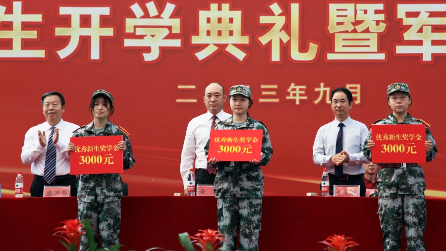學院領導為高考優(yōu)秀學子頒發(fā)新生獎學金。