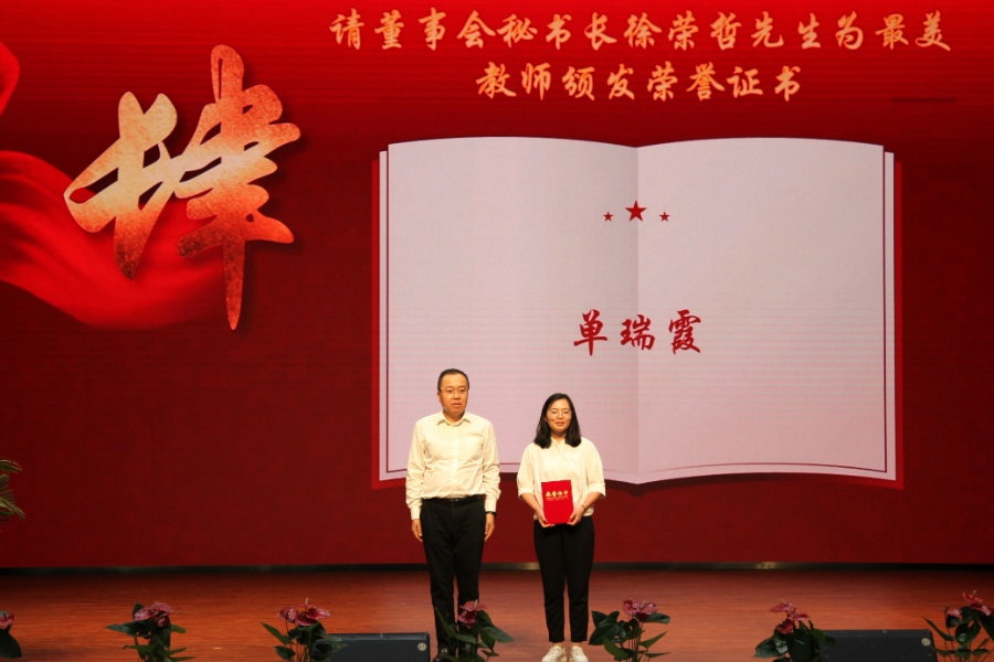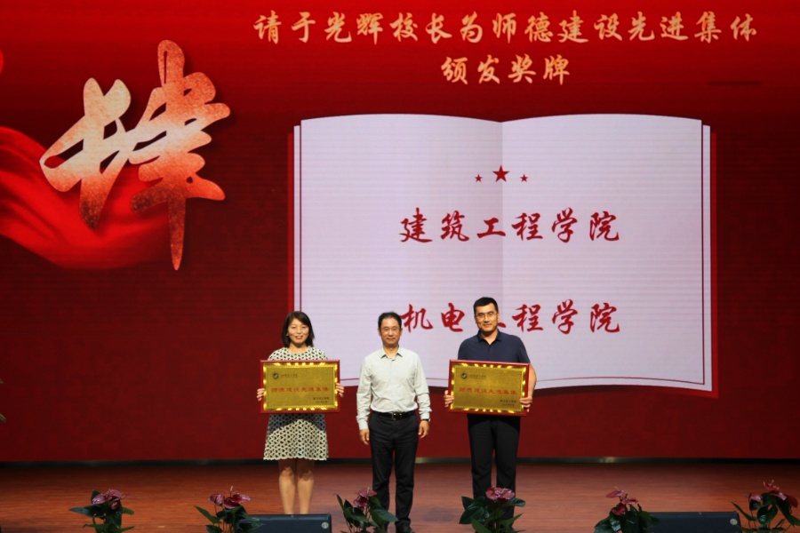 于光輝校長(zhǎng)為師德先進(jìn)集體頒發(fā)獎(jiǎng)牌;董事會(huì)秘書(shū)長(zhǎng)徐榮哲先生給最美教師頒發(fā)榮譽(yù)證書(shū);黨委書(shū)記盛國(guó)軍教授為教書(shū)育人楷模頒發(fā)榮譽(yù)證書(shū)。