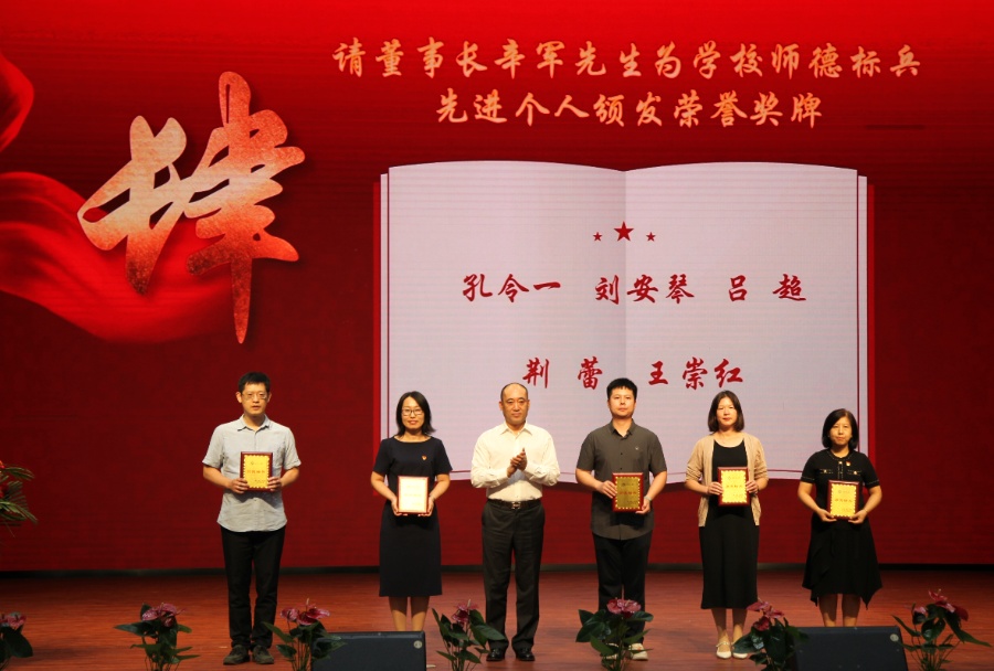 辛軍董事長(zhǎng)為學(xué)校師德標(biāo)兵先進(jìn)個(gè)人頒發(fā)榮譽(yù)證書(shū),勉勵(lì)廣大教職工擔(dān)當(dāng)好教書(shū)育人的神圣使命和時(shí)代重任,積極探索創(chuàng)新教學(xué)模式,因材施教,推動(dòng)教育事業(yè)高質(zhì)量發(fā)展,牢記為黨育人、為國(guó)育才使命,為社會(huì)培養(yǎng)更多堪當(dāng)大任之才。