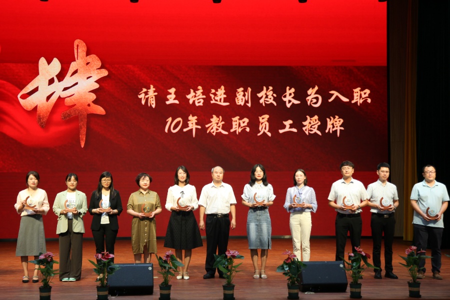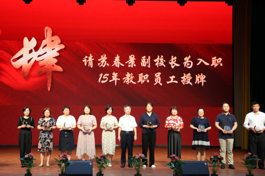 蘇春景副校長(zhǎng)和王培進(jìn)副校長(zhǎng)分別為入職15年教職員工和入職10年教職員工授牌。