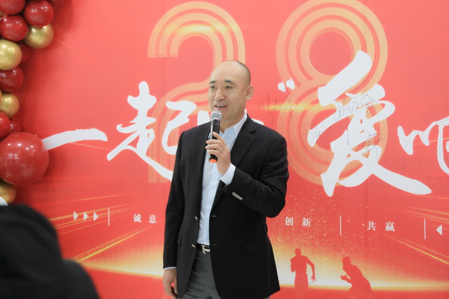 祥隆企業(yè)集團(tuán)董事長(zhǎng)辛軍、總裁張吉亮及各產(chǎn)業(yè)、職能中心領(lǐng)導(dǎo)出席慶典,并送上對(duì)祥隆企業(yè)集團(tuán)的祝福。辛軍董事長(zhǎng)為與祥隆企業(yè)集團(tuán)同齡的員工發(fā)放禮品并發(fā)表講話,感謝全體員工28年風(fēng)雨同行的陪伴,祝福祥隆企業(yè)集團(tuán)未來步履不停,四海迎光!
