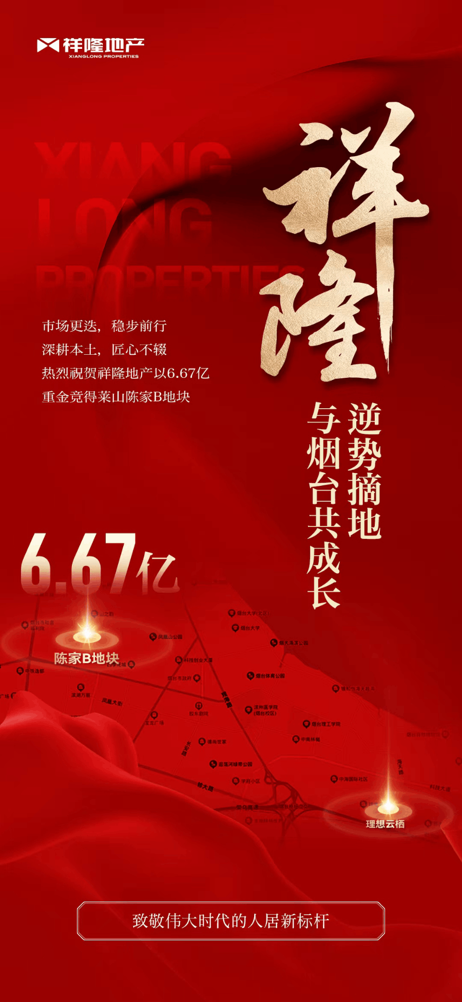 同日,祥隆地產(chǎn)以總價(jià)6.67億元成功競(jìng)得陳家B地塊為祥隆企業(yè)集團(tuán)恢弘版圖上再添璀璨一筆!