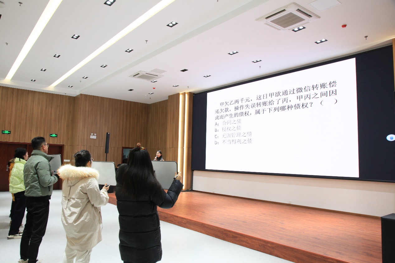 決賽采用線下積分制,由集團聯(lián)隊、地產(chǎn)集團、商管公司、礦業(yè)集團、科技集團、健康集團六支代表隊參賽。決賽第一輪分必答題、搶答題、差異化賦分題三個環(huán)節(jié),題目涵蓋了憲法、民法等多方面法律知識,充分考察各代表隊的法律知識水平和臨場應變能力。最終得分前兩名礦業(yè)集團代表隊和科技集團代表隊進入第二輪決賽。