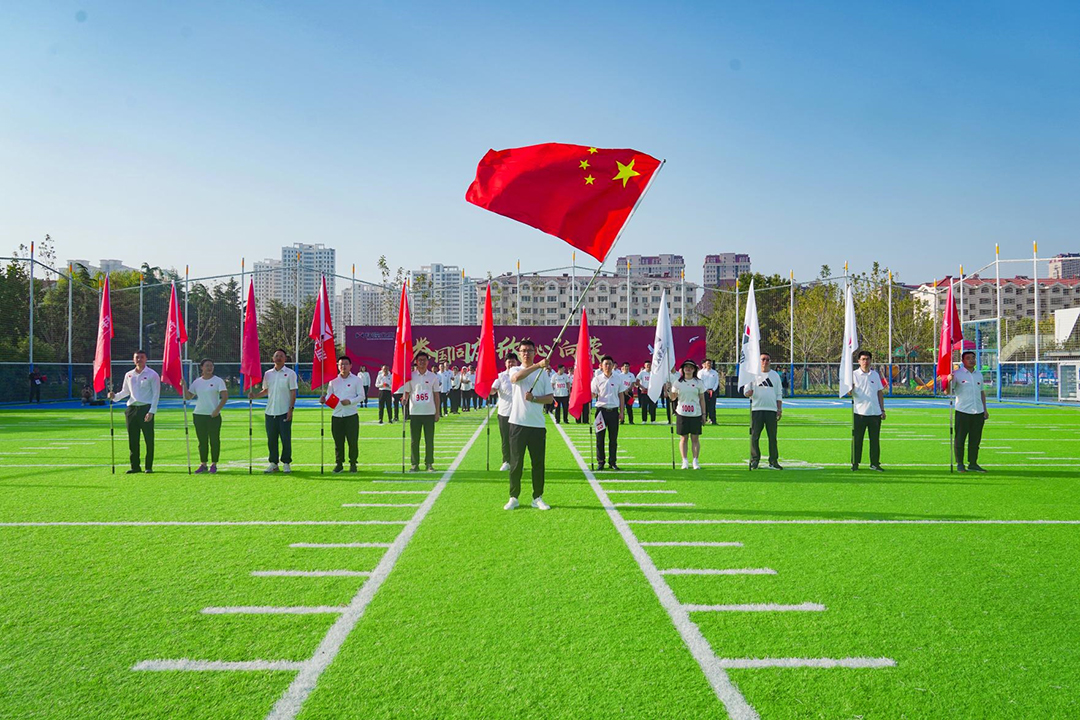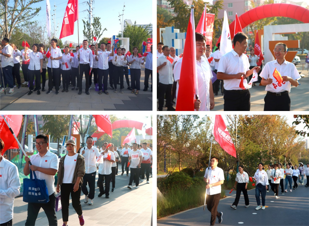 7時許,鳳凰湖公園東門已是人聲鼎沸,來自集團各產(chǎn)業(yè)的參賽者們身著統(tǒng)一服裝,精神抖擻地集結(jié)?,F(xiàn)場氣氛熱烈,國旗、司旗交相輝映、迎風(fēng)飄揚,員工精神飽滿,斗志昂揚,現(xiàn)場洋溢著濃厚的節(jié)日氛圍。