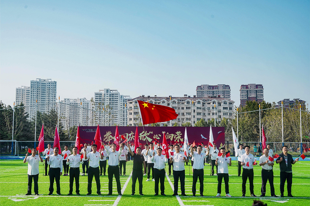 開幕式上,各位祥隆人揮舞手中國旗,齊聲高唱國歌,表達對祖國的無限熱愛與祝福。隨后,大家按照隊形擺出“75”造型,寓意與祖國同慶、共繪輝煌。